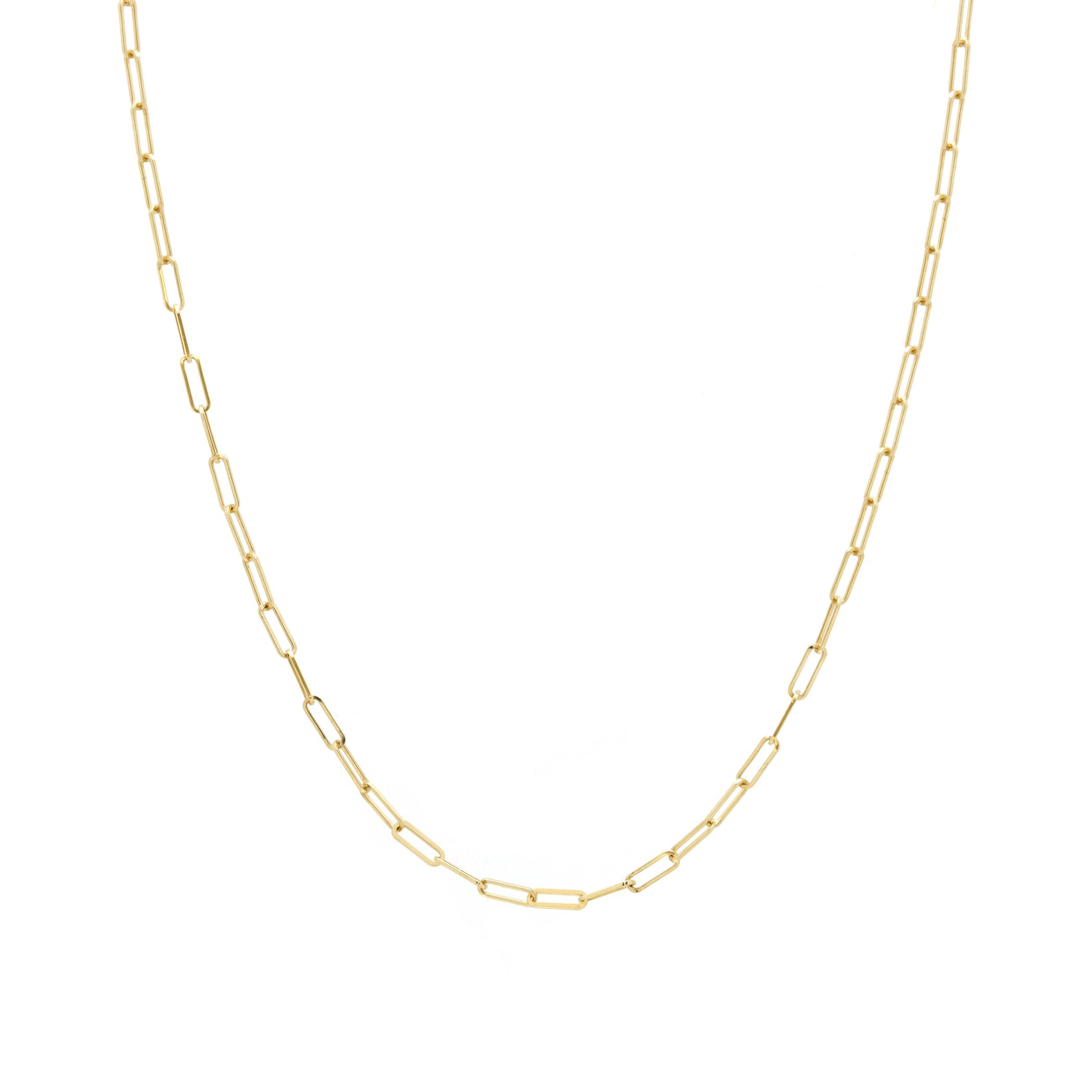 About: This paperclip chain necklace features elongated gold links for a clean, streamlined look. Versatile and easy to style, it layers effortlessly while bringing a polished finish to everyday styling.